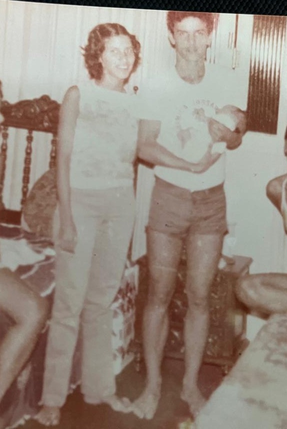 Do lado direito da foto está meu pai, que na época tinha apenas vinte e um anos e muito inexperiência de vida, de paternidade, de existência. Meu pai acentua a inexperiência, quando olha pra foto hoje. Minha mãe acha que a ignorância do pobre é o que ajuda a ter coragem, porque ele não se pensa. Não pode pensar-se. Toma a vida como uma obrigação e simplesmente segue adiante, andando.