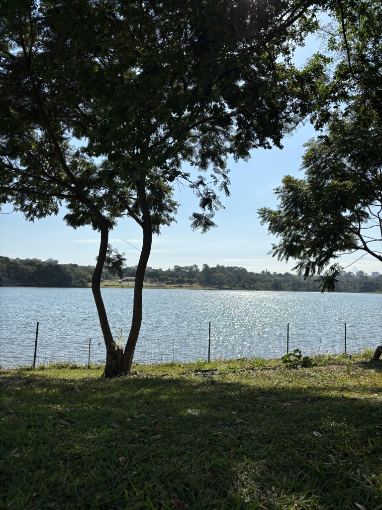 Mirando o único lago da cidade, assisto a dança dos raios solares quando encontram a superfície aquática, produzindo um estouro de luzes. A natureza comemora o nascimento do dia como se fosse ano novo. Os fogos, silenciosos, são compostos pelo movimento do vento na água e do furo das luzes solares cortando o vento. É um show particular na superfície das águas.